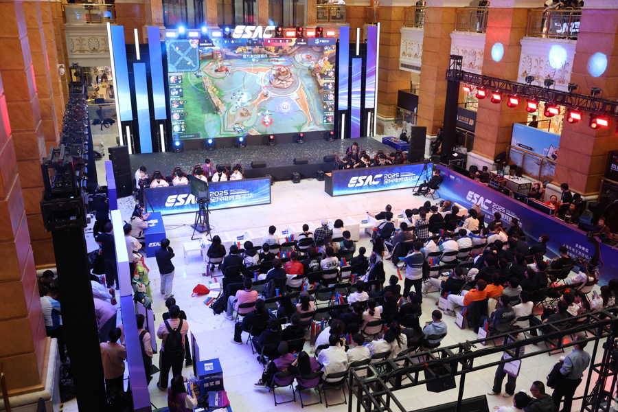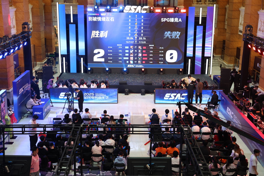 2025全民电竞嘉年华全民锦标赛设在上海人流量最大的月星环球港B2中央广场,观众可以全方位观摩。
